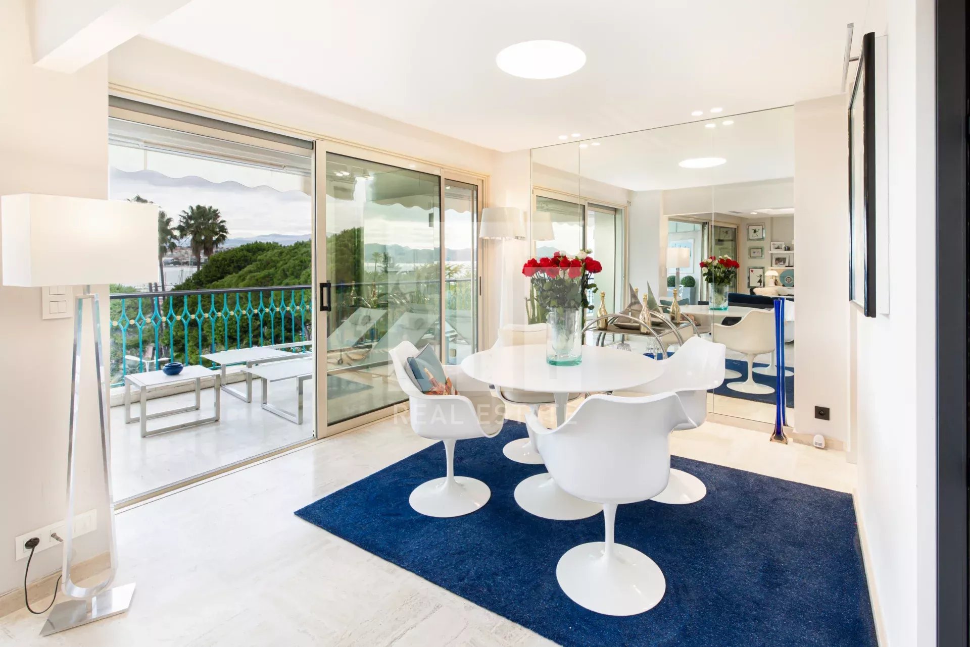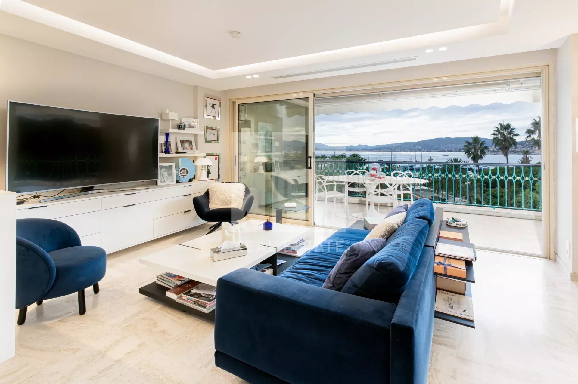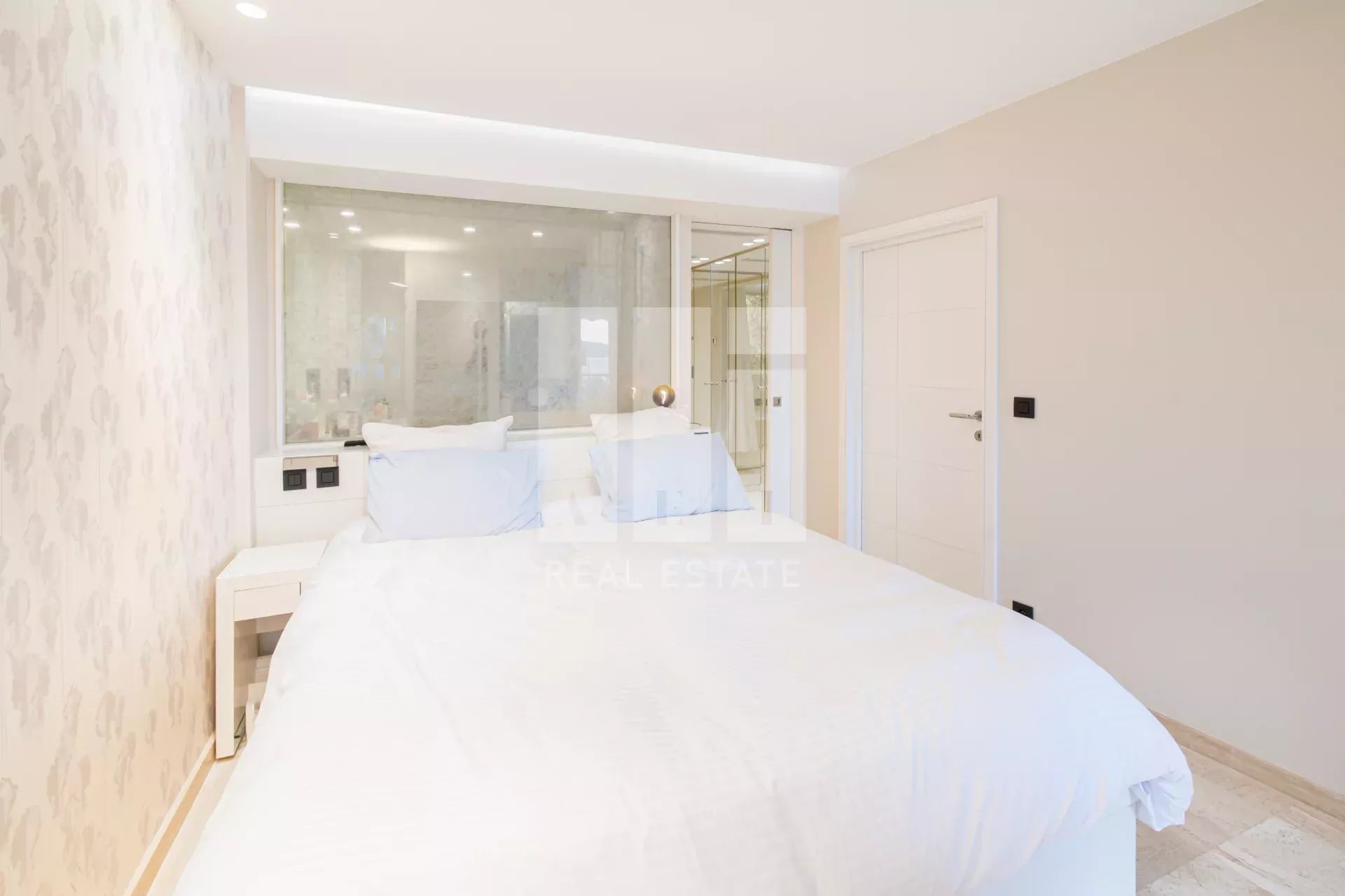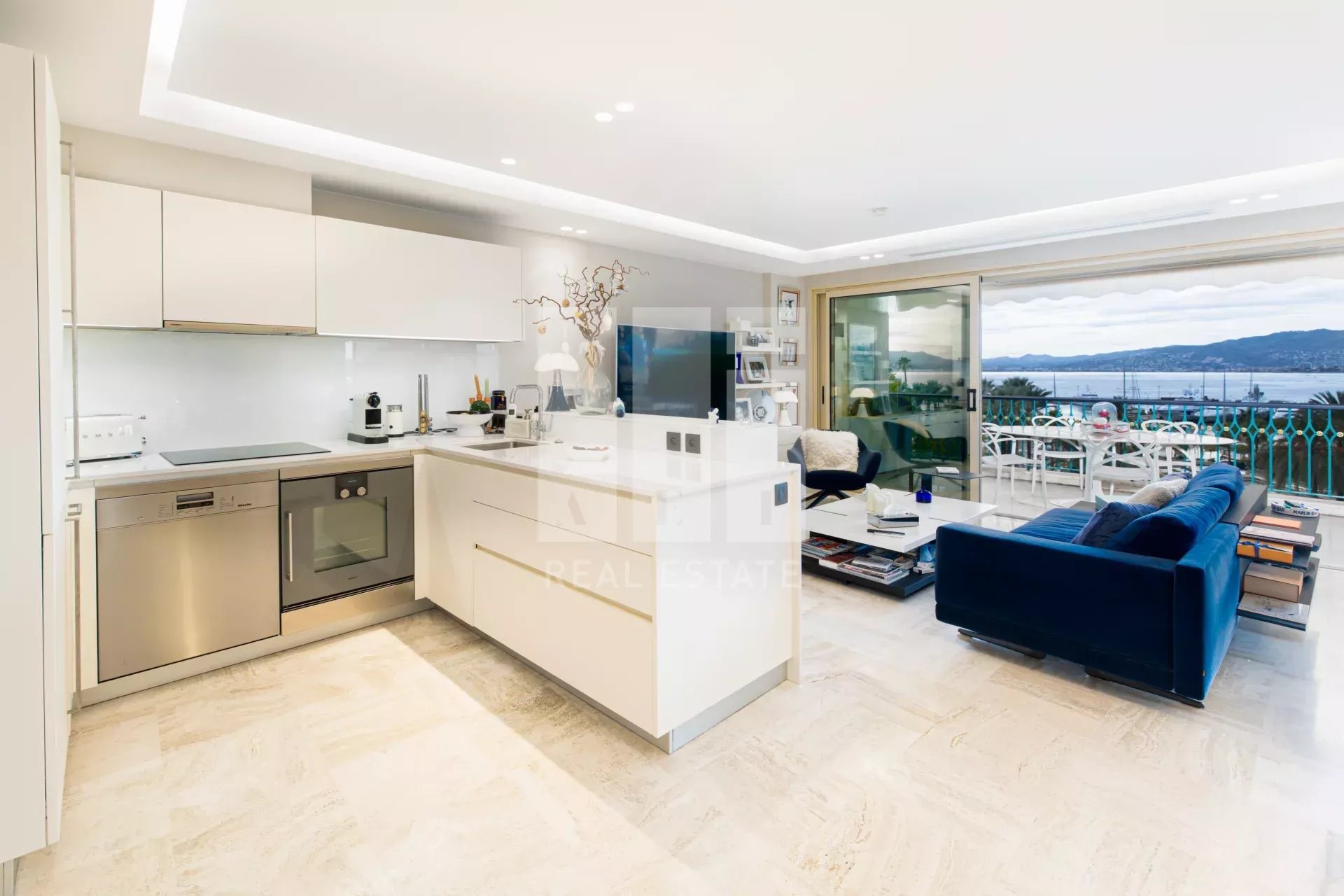 Dans une résidence de grand standing gardée 24h/24 face au Port Canto, en étage élevé, magnifique appartement traversant de 85 m² entièrement rénové dans un style contemporain, bénéficiant d'une vue mer panoramique.