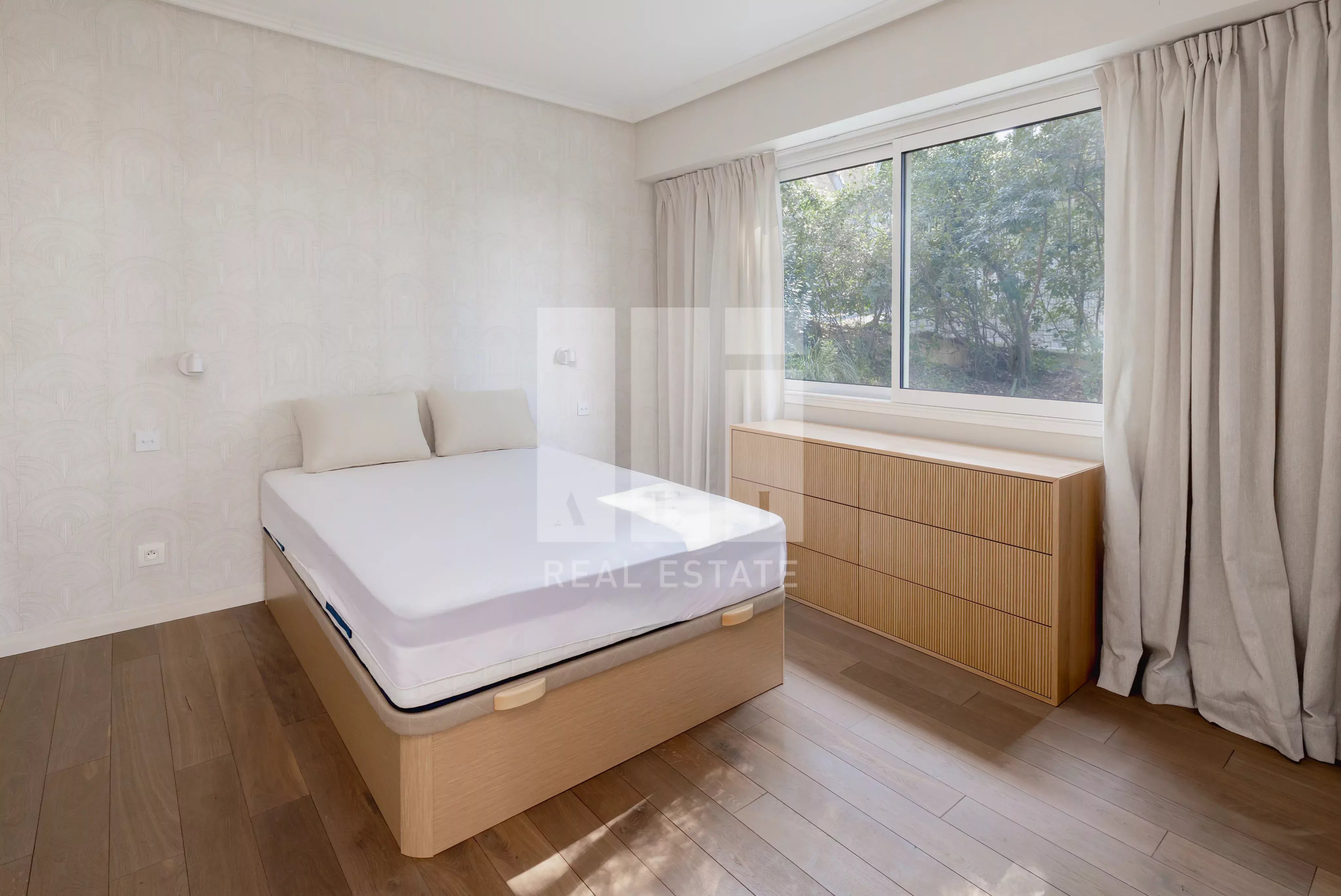 La partie nuit offre une suite parentale avec dressing, salle de douche et WC, ainsi qu’une seconde chambre avec dressing et une salle de bains avec WC.